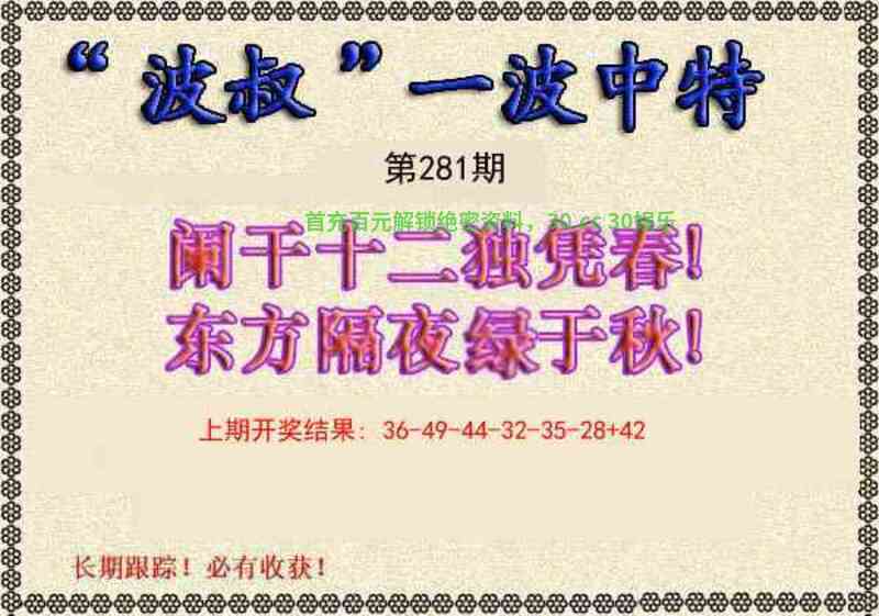 282期🍇三行中特🍇【水木金】开:牛41准 |