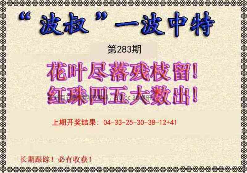 283期:四肖 | 羊鸡龙马 | 鸡45中 |
